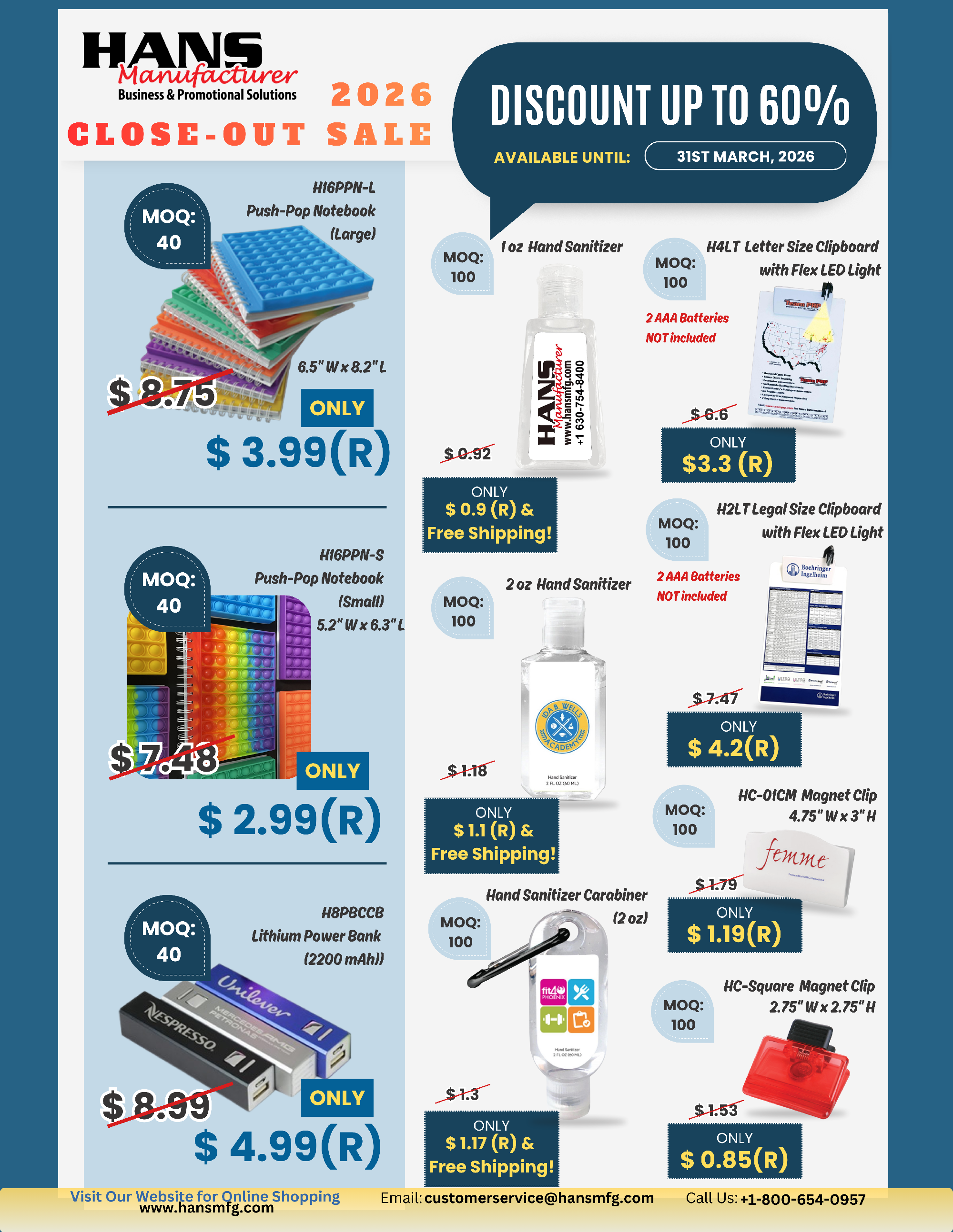 Hans Manufacturer Inc. – Your trusted supplier for promotional products, imprinting services, and corporate gifts.